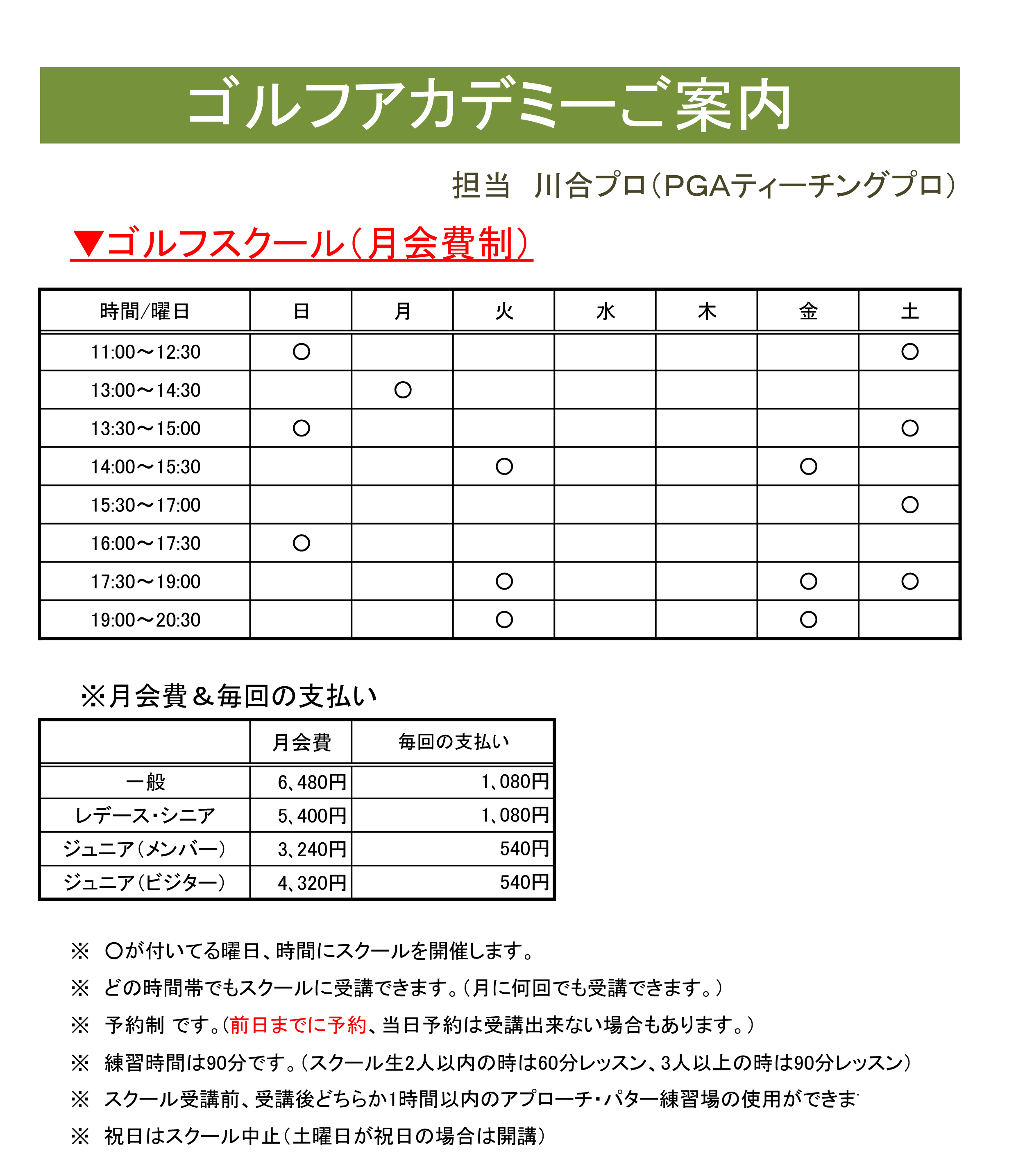 ↓個人レッスン / ↓ビデオ・パソコンレッスン / ↓ゴルフスクール / ↓ジュニアスクール